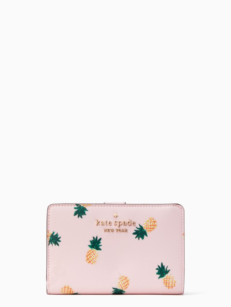 Kate Spade,Staci Medium Pineapple Compact Bifold Wallet,