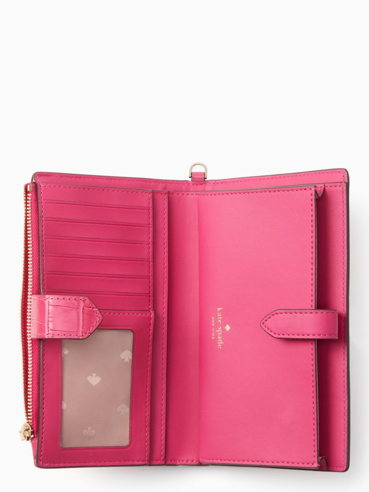interior: pocket for phone, 6 credit card slots, id window, 2 slip pockets, bill fold compartment