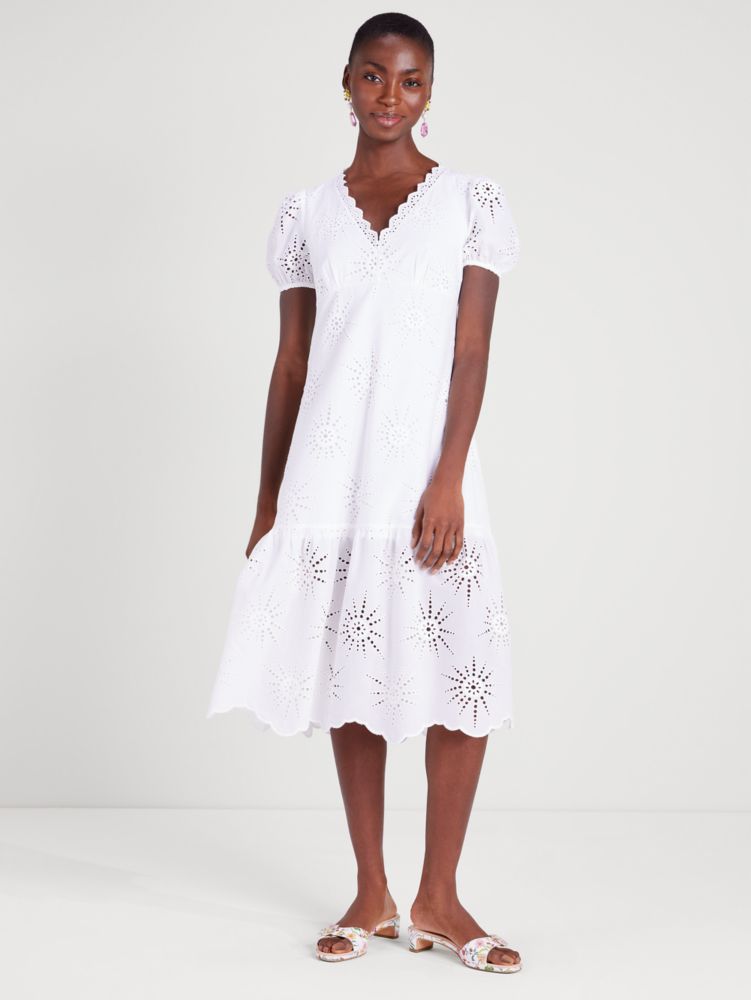 Oh, how we love sundress weather... On a bright, blue-skied day, we suggest wearing this ethereal cotton eyelet dress embroidered with suns.