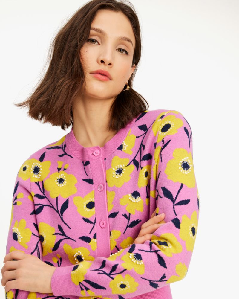 Now in season: this polished pencil skirt in our Sunshine Floral print knit. It's embellished with delicate beads for a subtle hint of shimmer.