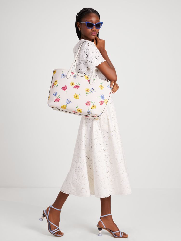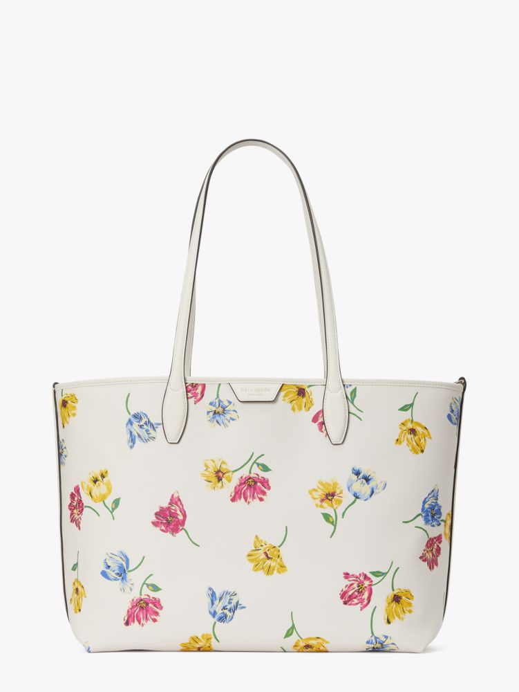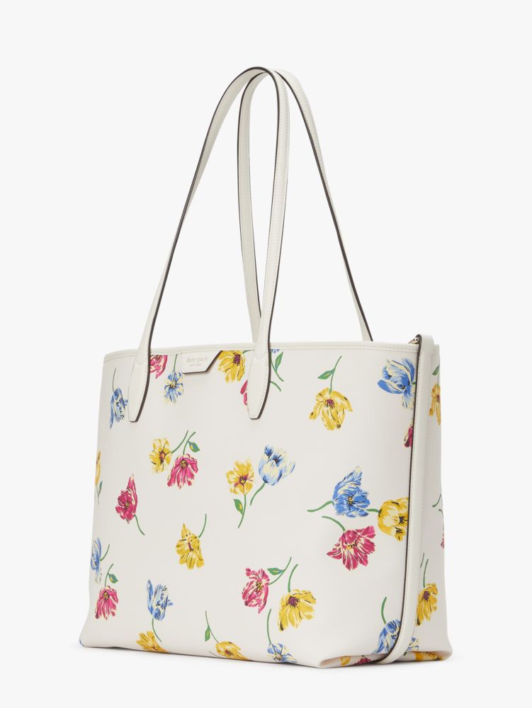 Our Sutton tote is updated for spring with bright tulip blooms. With a roomy interior and pockets for the small things, it's a must-have for your daily commute.