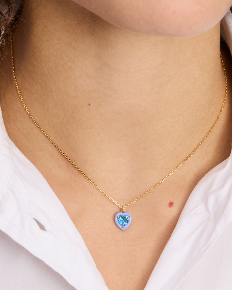 Kate Spade,Sweetheart Mini Pendant,Single Strand,Cubic Zirconia,Enamel,Gem Embellishment,Heart Embellishment,Gold Plated,D...,