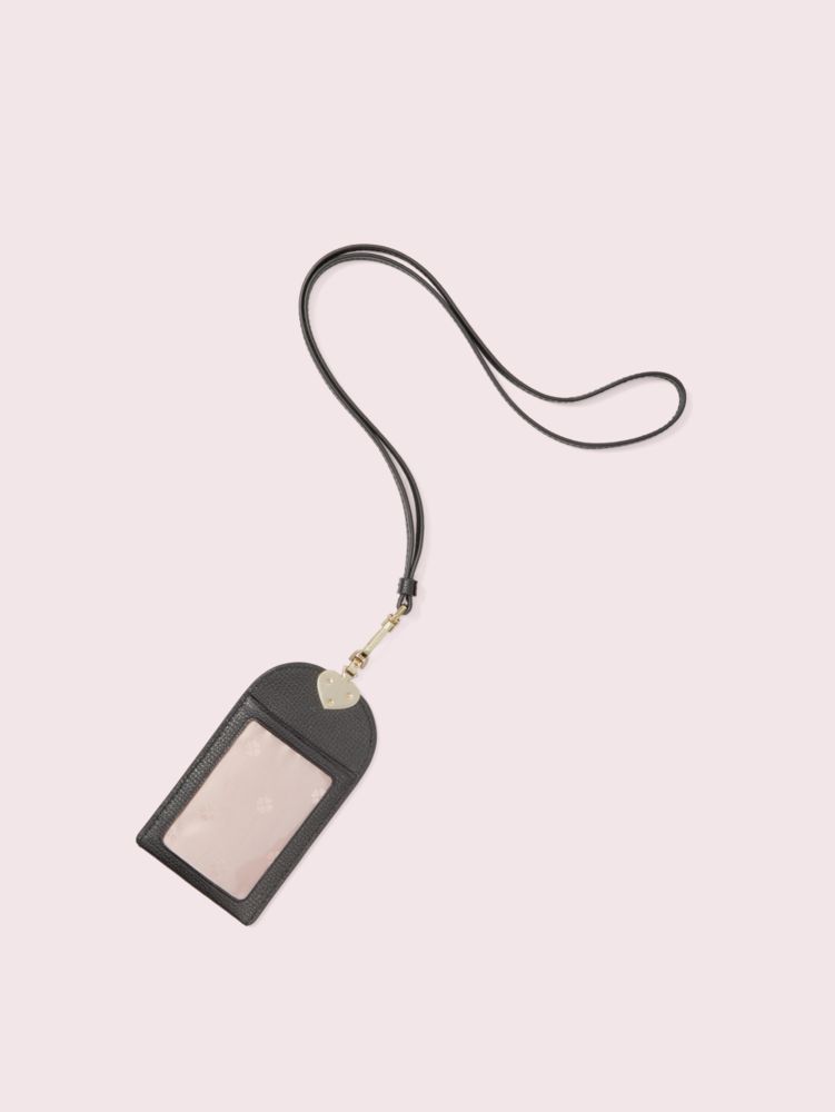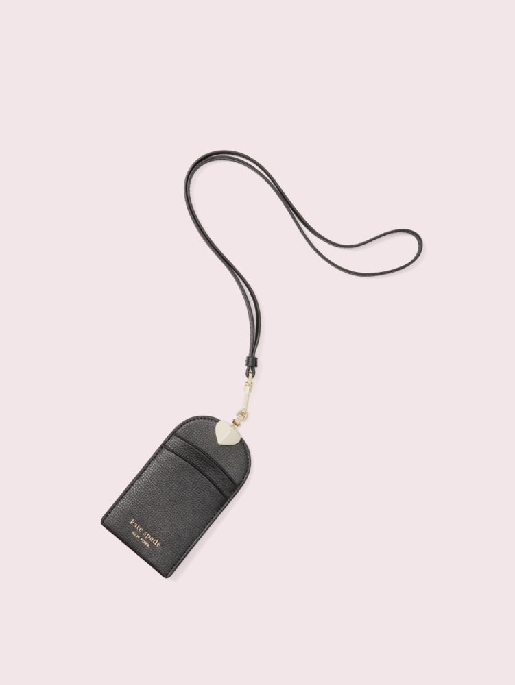 if you have to wear a lanyard, at least wear one that's made from luxurious crossgrain leather and has chic domed pockets to hold all of your can't-lose cards. we added an upside down enamel spade that looks like a heart to make it even prettier.