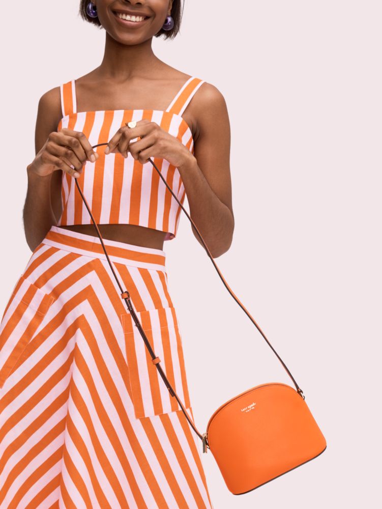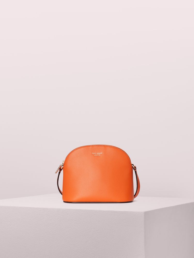this is that understated crossbody that you can wear everywhere and with everything. even with another bag. we love the cool curves of the dome shape and that it's made from durable crossgrain leather. though it may look simple at first glance, up close you'll see that it has several beautiful details like jewelry-ish hardware on the adjustable strap, an interior snap pocket and a slip pocket on the back, too.