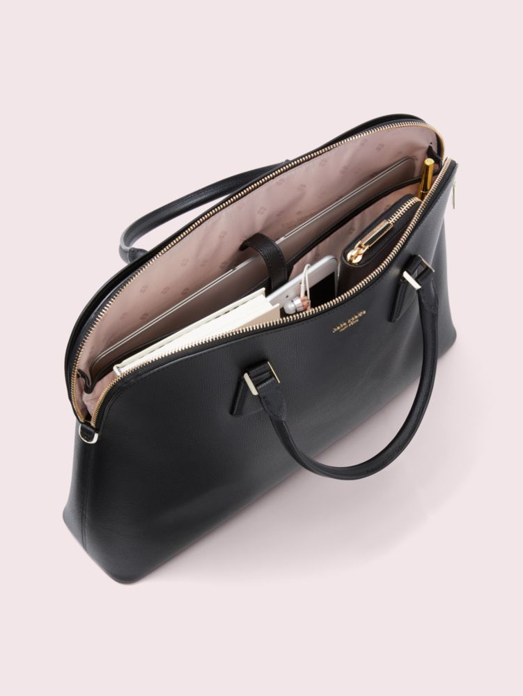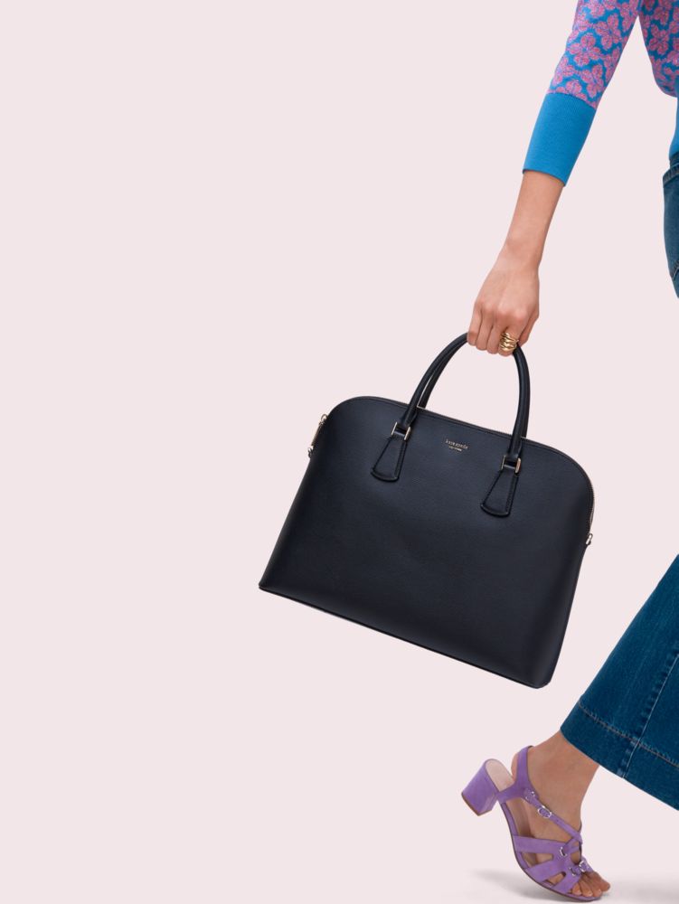 we consider this bag a purse for your laptop. so of course we think it should be as chic as any other handbag we make. it's made from durable crossgrain leather to withstand scratches and mishaps--because stuff happens. and it's a universal size so it fits all laptops, which means you won't have to upgrade when you get a bigger or smaller computer.
