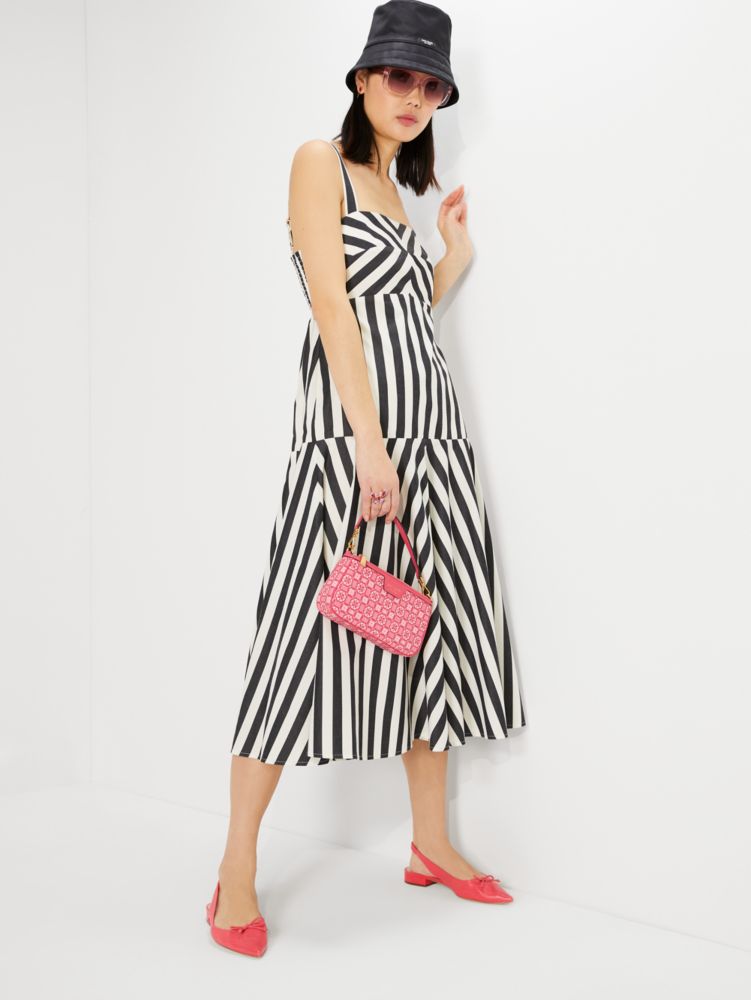Make a cool geometric statement in our new midi dress: we spliced together our Terrace Stripe print cotton poplin for a bold look.