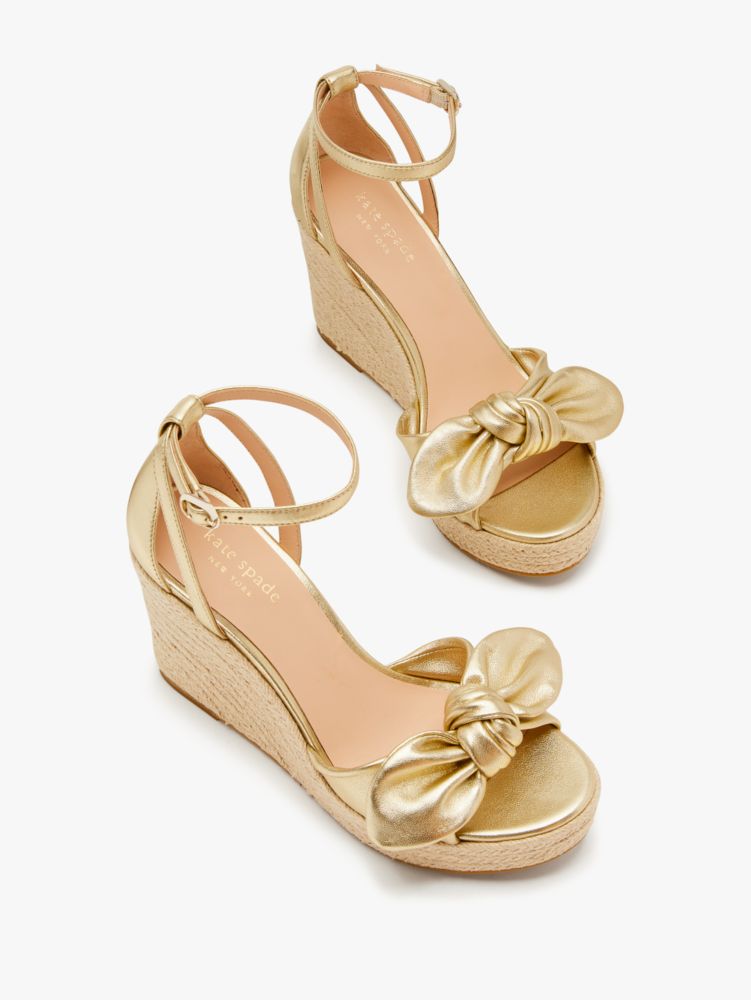 Kate Spade,Tianna Espadrille Wedges,Leather,Jute,Lining Leather,Sandals,Espadrilles,Bow,Embellished,Day Party,Cream
