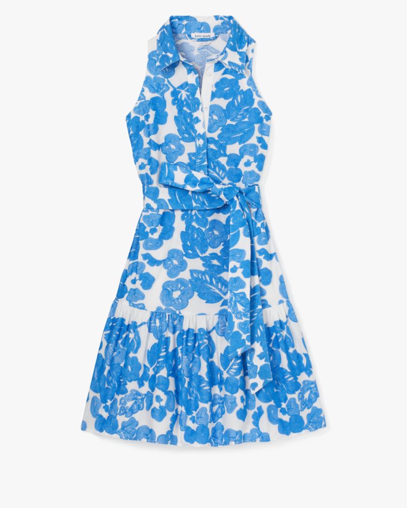 Finished with intricate embroidery, this breezy knee-length dress is tailored in our Tropical Foliage print poplin.