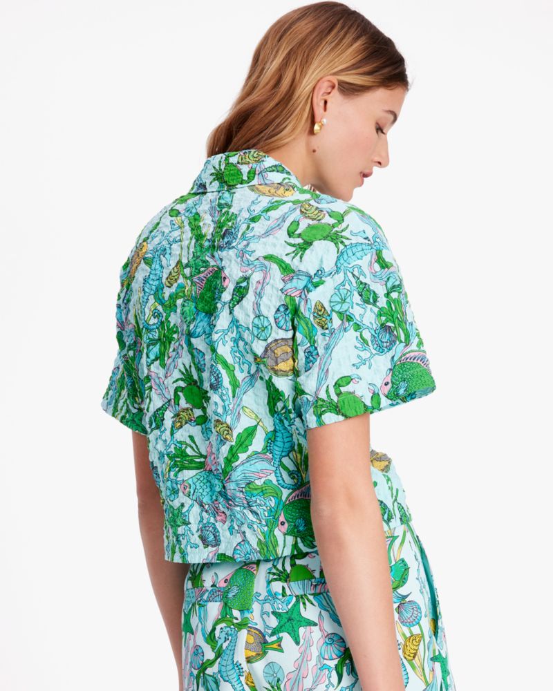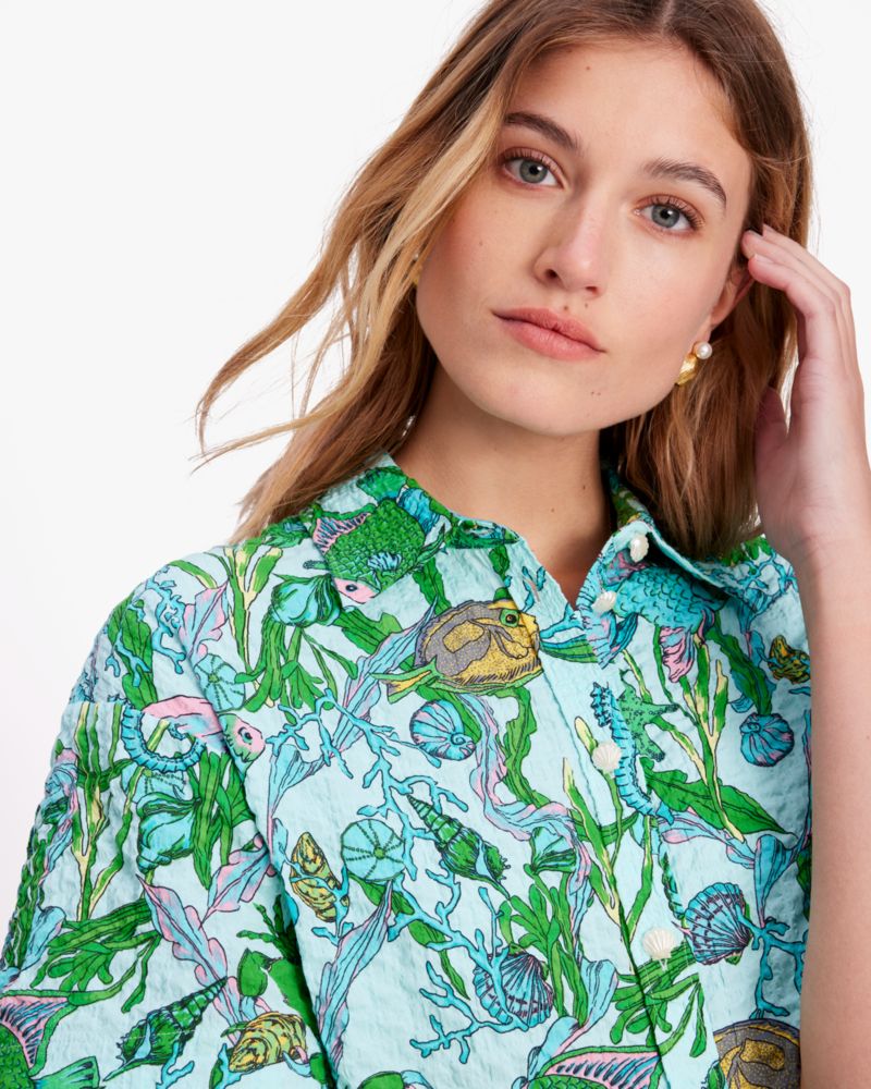 Kate Spade,Under The Sea Collared Top,Cotton,Button Down,Casual,Multi Color