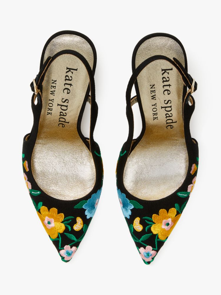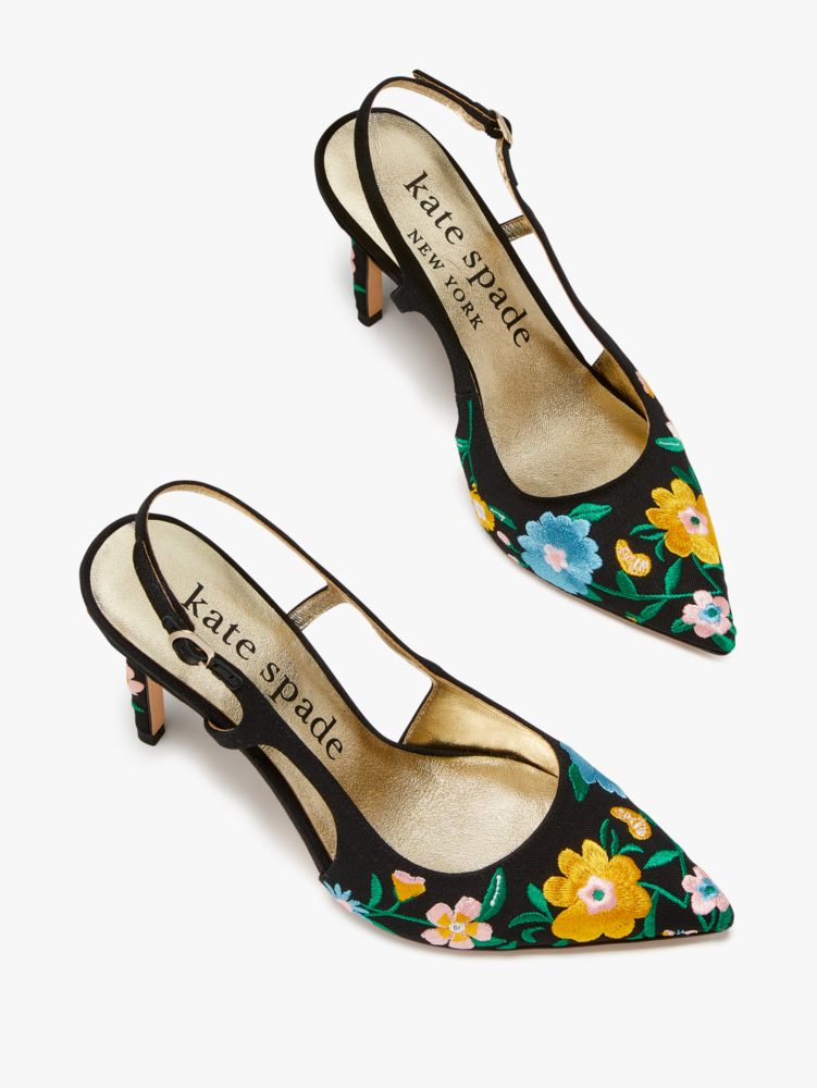 "Ooh! Where'd you get those pumps?" You'll be hearing that a lot when you wear these slingback ones, freshly embroidered with flowers for spring.