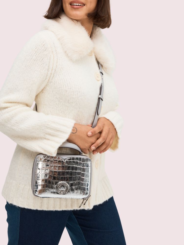 Kate Spade,Vanity Metallic Croc-embossed Mini Top Handle Bag,