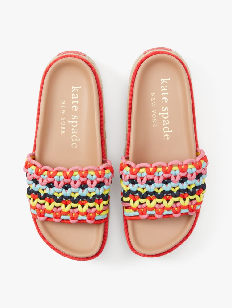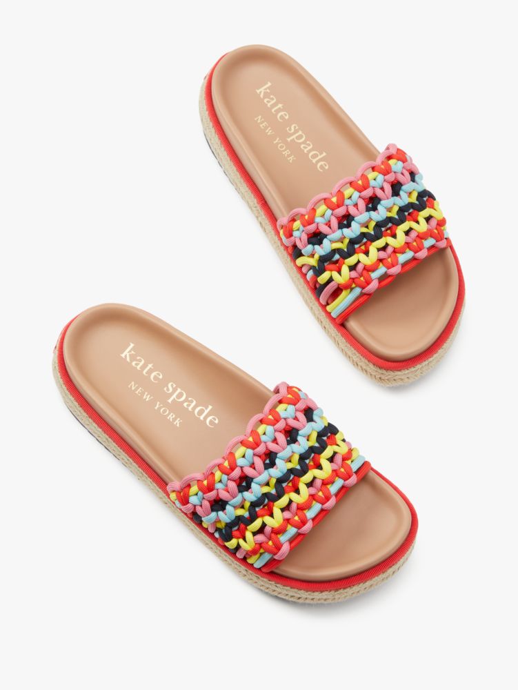 Kate Spade,Vita Platform Slide Sandals,Nappa Leather,Cotton,Espadrilles,Slides,Piping,Breathable,Casual,