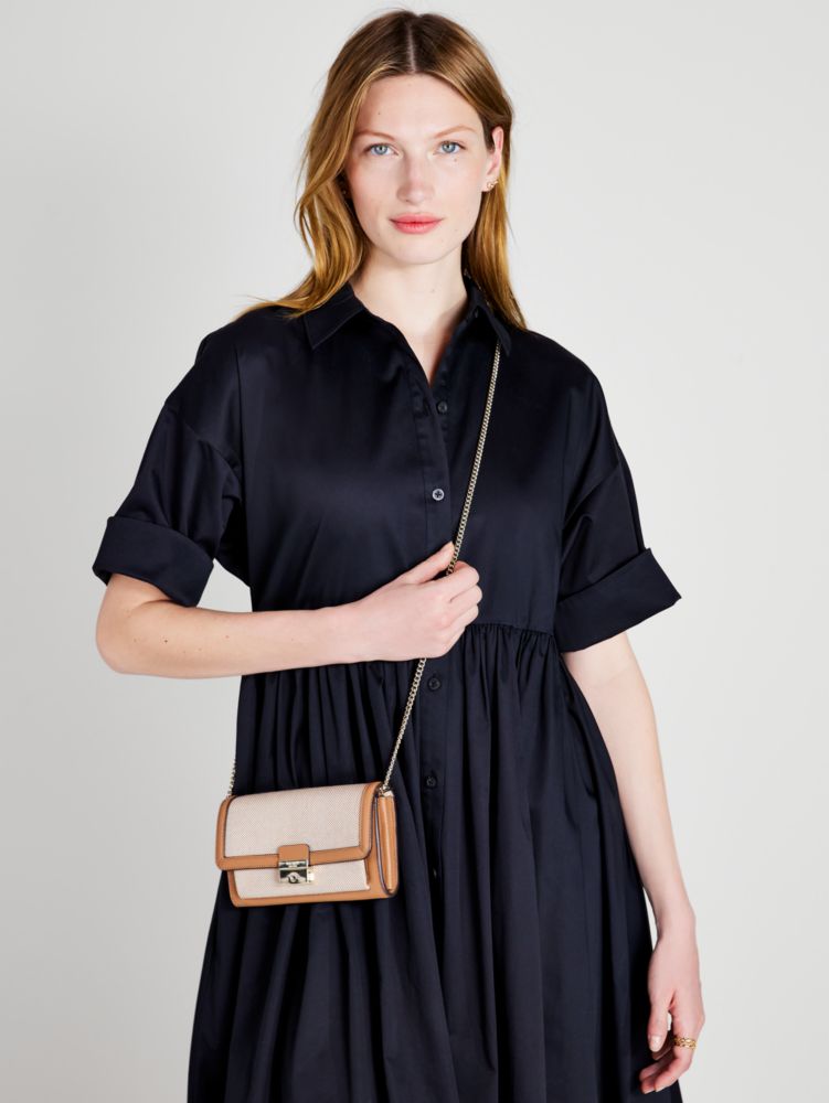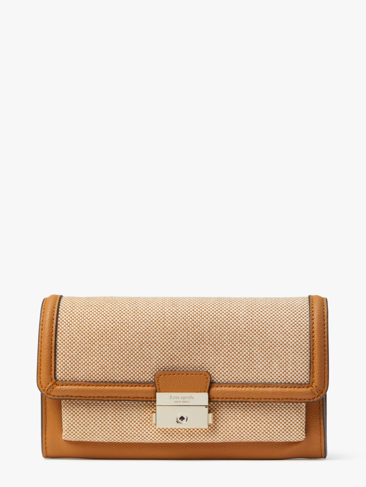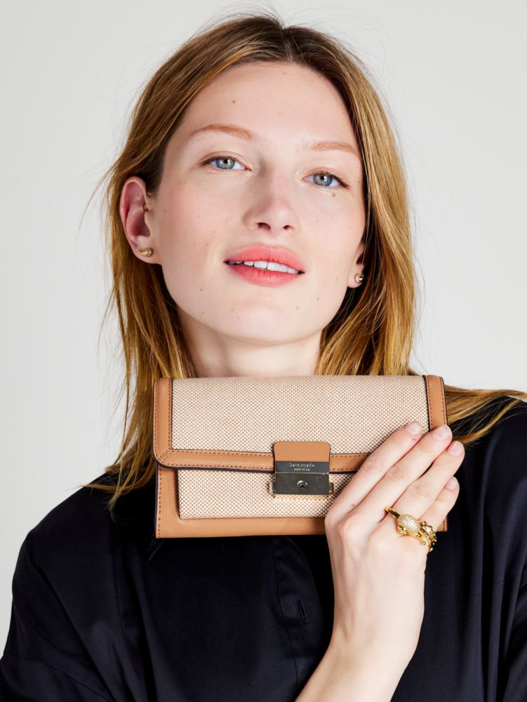 - Crossbody wallet with pinch-lock flap closure
