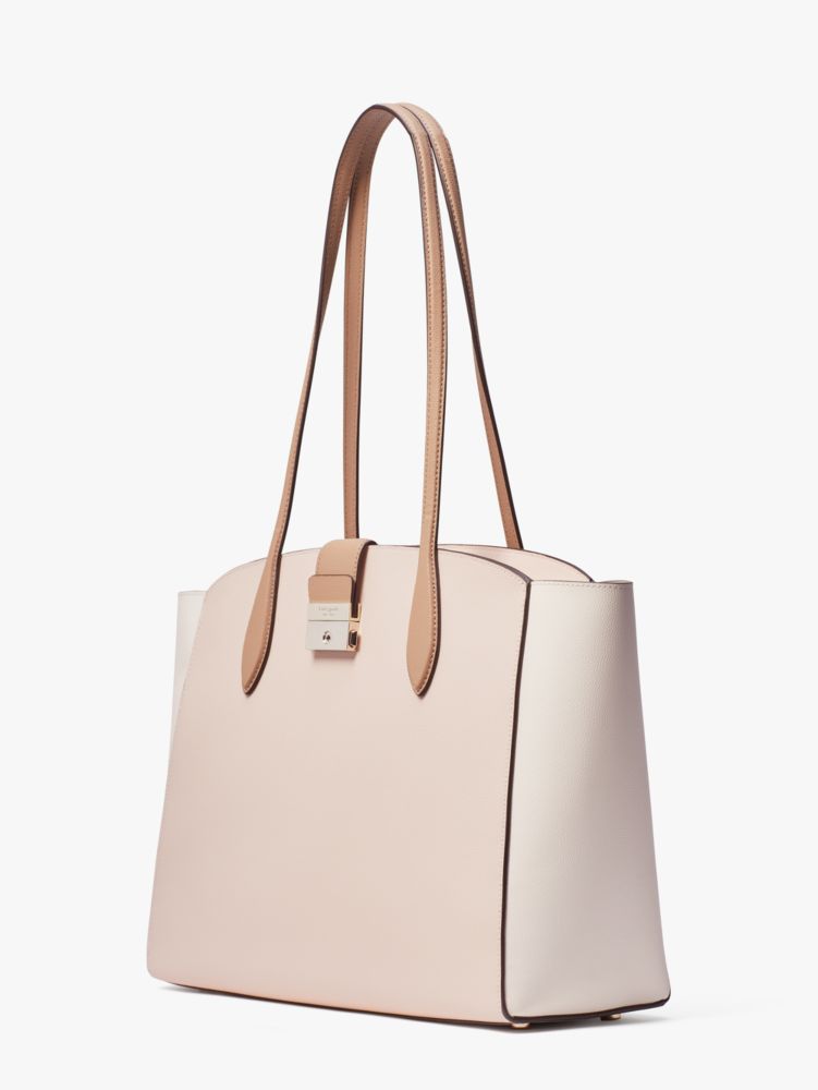 Our new tote is ready for any voyage life brings. Crafted from colorblocked Italian leather, it fits everything you need for work (like a 15" laptop).