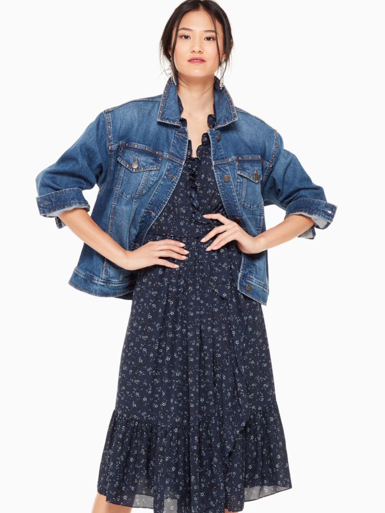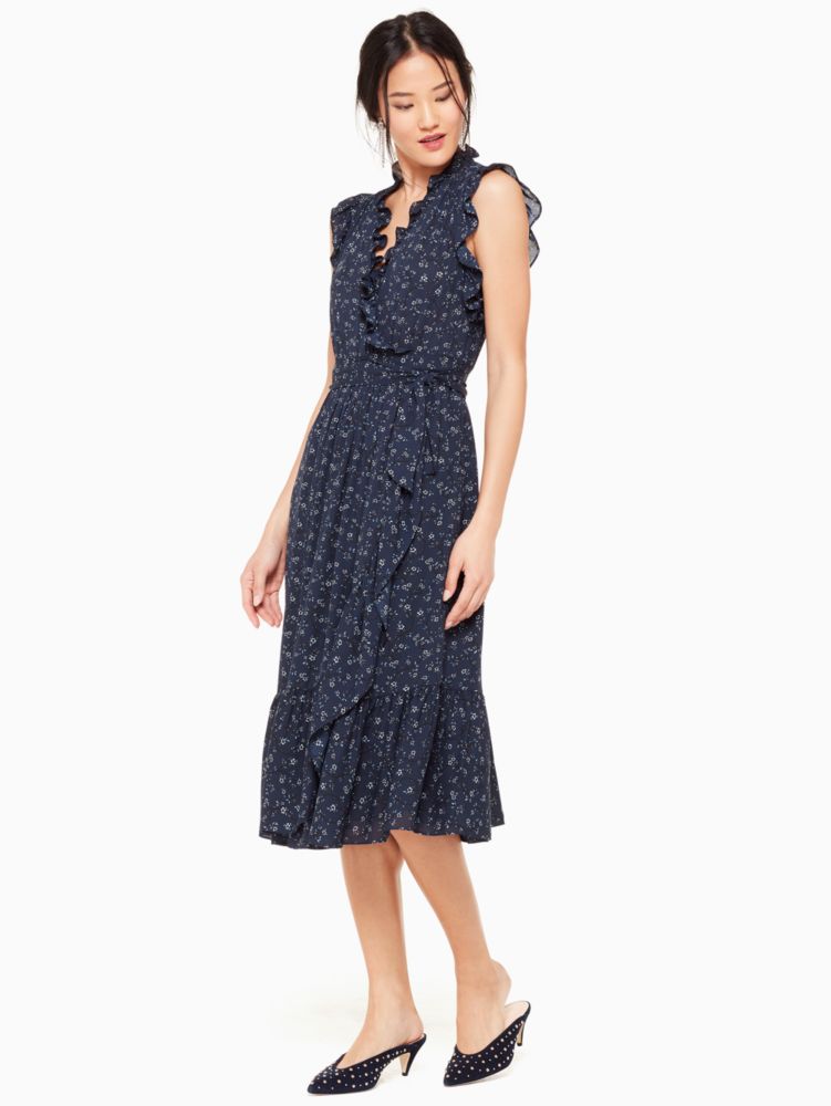 the wrap dress has earned its spot in nearly every womans essential wardrobe for its easy, feminine glamour. with a delicate floral print, adriatic blue hue and ruffle details, this one dresses up or down, packs easily and adds a bit of western whimsy, no matter where you happen to be.