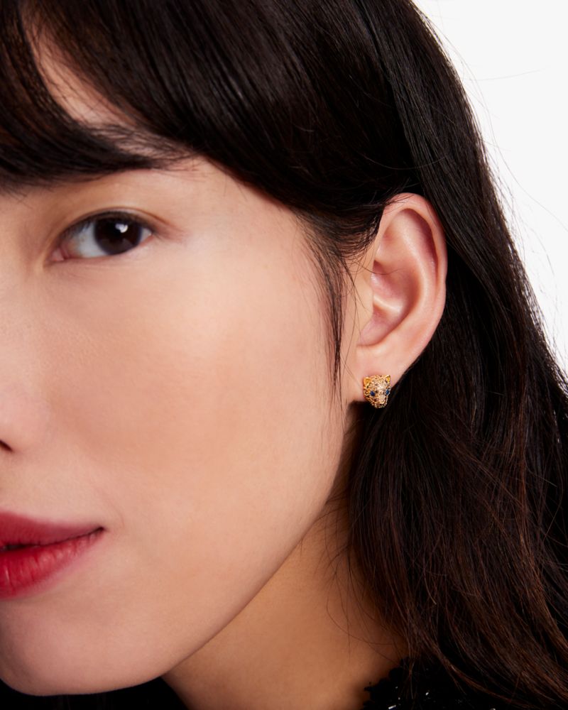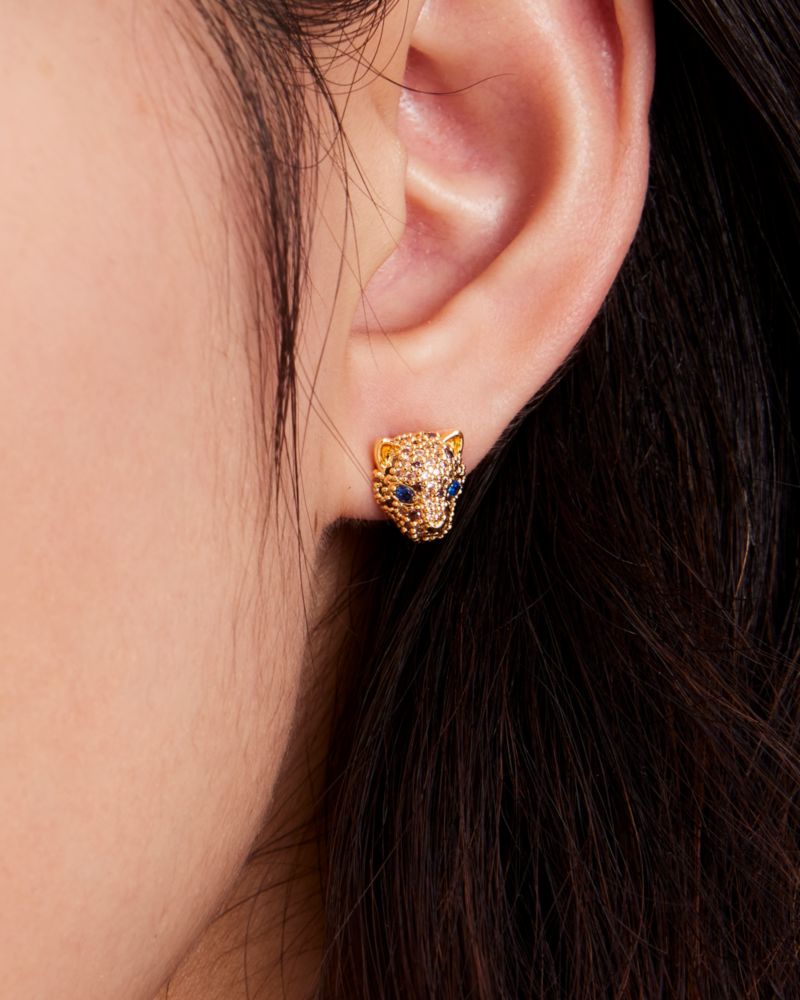 playful leopard studs featuring shimmering pavé