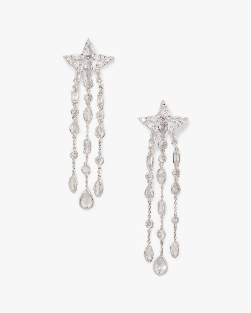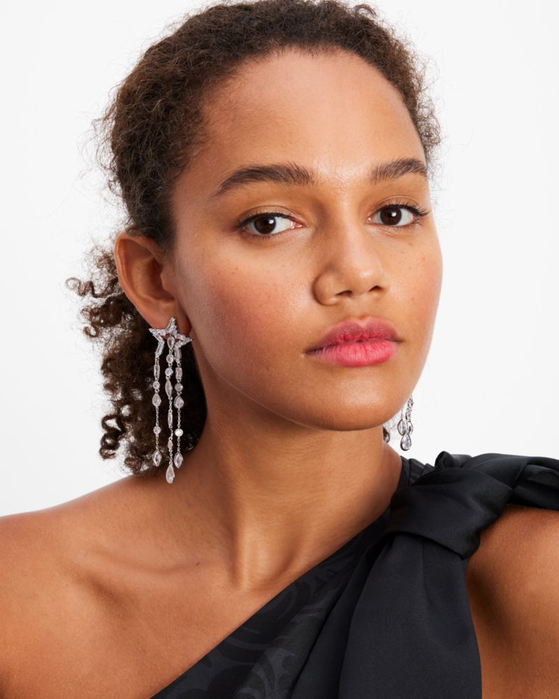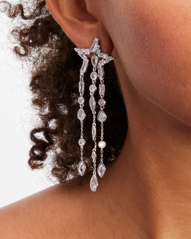 Kate Spade,You're A Star Statement Fringe Earrings,Dangle Earring,Crystal,Cubic Zirconia,Metal Material,Fringe,Gem Embelli...,Clear