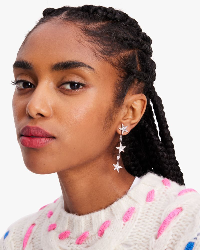 Kate Spade,You're A Star Linear Earrings,Dangle Earring,Metal Material,Cubic Zirconia,Gem Embellishment,Star Embellishment...,Clear